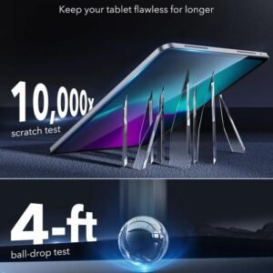 - Perlindungan Terbaik: Kaca kuat tahan tekanan 110 lb, ditempa dengan tingkat kekerasan tertinggi, memastikan layar Anda tetap terlindungi dari goresan dan retakan akibat jatuh, benturan, kunci, atau kabel.