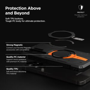 • [Pengisian Daya Magnetik & Dudukan Multi-Sudut] Dilengkapi cincin magnet internal yang kuat yang terpasang dengan aman dengan pengisi daya nirkabel magnetik dan aksesori untuk konektivitas tanpa hambatan. Cincin serbaguna ini juga berfungsi sebagai penyangga yang kokoh, menawarkan sudut pandang yang dapat disesuaikan untuk panggilan video atau streaming tanpa menggunakan tangan.